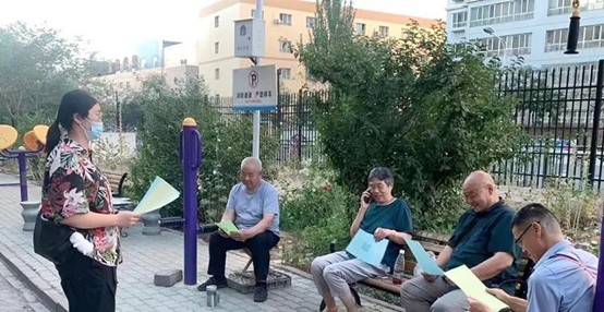 青格達湖鄉干部正在給轄區居民宣傳防范養老詐騙知識