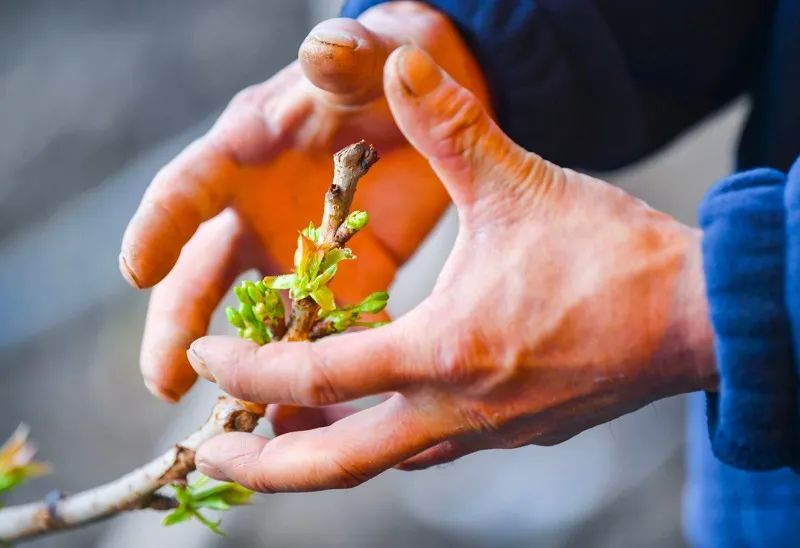 2月14日,位于烏魯木齊高新區(新市區)安寧渠鎮的塞外水鄉生態(tài)農場(chǎng)員工查看櫻桃樹(shù)生長(cháng)情況