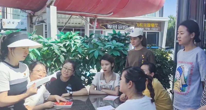 友誼路街道黨建辦負責人趙杏媛帶領(lǐng)工作人員、商戶(hù)學(xué)習相關(guān)精神