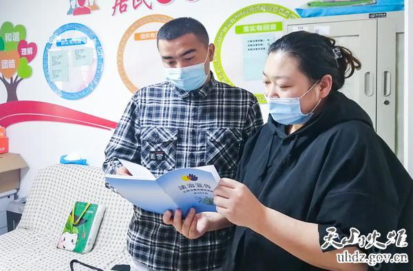 社區工作人員為居民發(fā)放非法集資宣傳資料