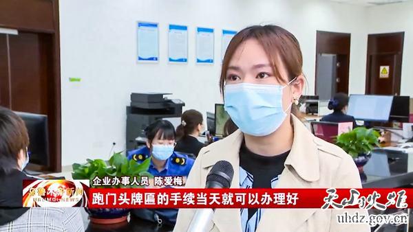 企業(yè)辦事人員陳愛(ài)梅正在辦理店面門(mén)頭牌匾相關(guān)手續。她說(shuō),她所在的企業(yè)經(jīng)營(yíng)連鎖店面,經(jīng)常辦理門(mén)頭牌匾手續,現在可以通過(guò)App“掌上辦”,而且當天就能辦好。