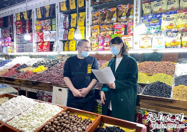 田雅娟了解司馬義的生意情況 隨后,社區工作人員又來(lái)到司馬義·阿不都偉力的商鋪,小店生意很紅火,是出名的網(wǎng)紅干果店。司馬義·阿不都偉力說(shuō):“社區包戶(hù)干部經(jīng)常給我們宣傳小商鋪的最新政策,讓我們真切感受到黨和政府對老百姓的關(guān)心,這樣我們的生意才能做得更好?!?/p> 北京路口社區黨總支書(shū)記田雅娟說(shuō):“政府報告中提出的奮斗目標和總體安排,給我們基層工作人員指明了工作方向。下一步我們要對社區工作確立新目標,做好各個(gè)業(yè)務(wù)口子的工作,落實(shí)居民服務(wù),關(guān)注轄區中與居民密切相關(guān)工作的開(kāi)展,將‘兩會(huì )’內容通過(guò)各種形式宣講給轄區居民。同時(shí)做好社區和居民的相互配合工作,著(zhù)重加強社區防疫工作、安全生產(chǎn)、社會(huì )保障、扶貧救助等工作,為不斷增強轄區各族群的獲得感、幸福感和安全感積極貢獻力量?!?/p>