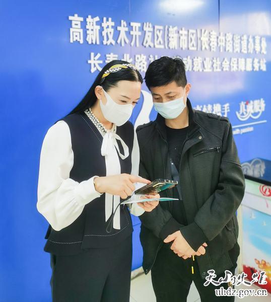 高新區(新市區)食安辦工作人員向長(cháng)春北路社區黨委書(shū)記李玉惠介紹“主題標語(yǔ)”月播和“食以安”周報內容