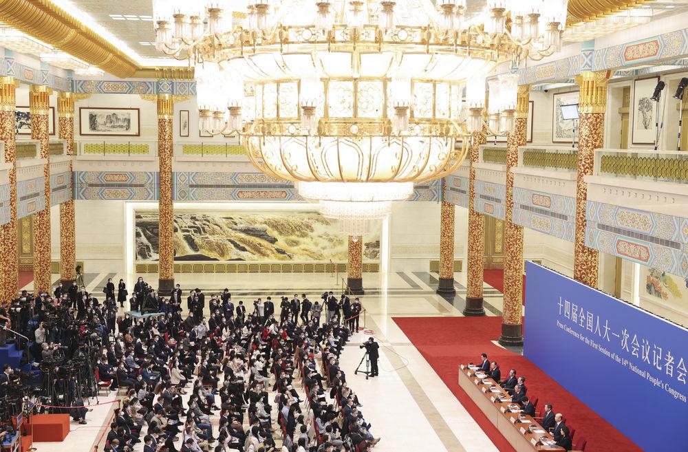 記者會(huì )在人民大會(huì )堂三樓金色大廳舉行,歷時(shí)約80分鐘,參加采訪(fǎng)的中外記者約500人。