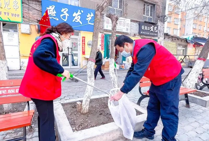 志愿者在社區開(kāi)展環(huán)境衛生整治