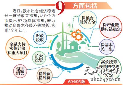 實(shí)現全年各項既定發(fā)展目標,亟需把穩增長(cháng)放在更加突出的位置,以政策靠前發(fā)力、充分發(fā)力穩住經(jīng)濟大盤(pán)。為不折不扣貫徹落實(shí)黨中央、國務(wù)院決策部署,推動(dòng)《自治區貫徹落實(shí)國發(fā)〔2022〕12號文件精神推進(jìn)經(jīng)濟穩增長(cháng)一攬子政策措施》盡快落地見(jiàn)效,烏魯木齊市結合發(fā)展實(shí)際、因地制宜推出9個(gè)方面57項具體措施推進(jìn)經(jīng)濟穩增長(cháng)。