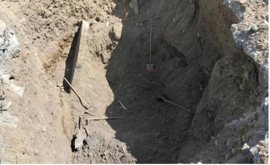 4. 管溝內遺留有坍塌滑落的混凝土塊和散落小塊混凝土塊及4把鐵鍬,混凝土塊厚20cm。