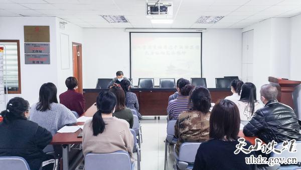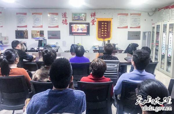 社區工作人員和轄區居民代表正在學(xué)習憲法內容