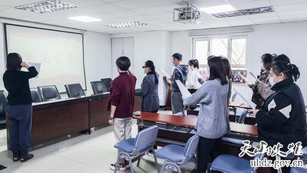 社區書(shū)記宋曦帶領(lǐng)大家進(jìn)行憲法宣誓