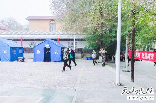 六十戶(hù)鄉星火村防震減災演練中村民們有序避難