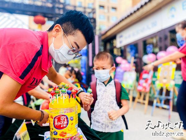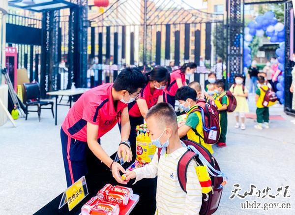 一入園,小朋友們就收到了工作隊員和老師們精心準備的“擊鼓明志”“聰明伶俐”“大吉大利”“平平安安”“身體棒棒”“快快樂(lè )樂(lè )”等6件大禮。
