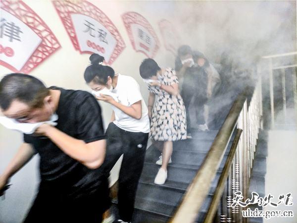教官演示用濕毛巾捂住口鼻逃生的方法