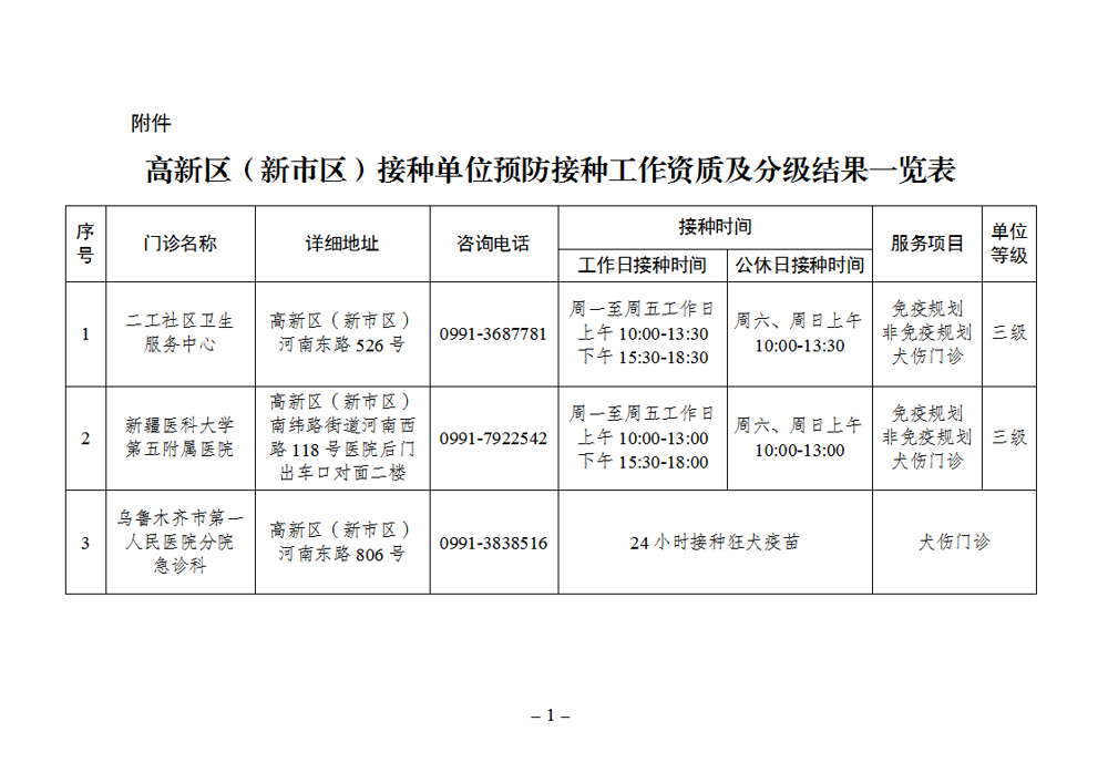 附件:高新區(新市區)接種單位預防接種工作資質(zhì)及分級結果一覽表
