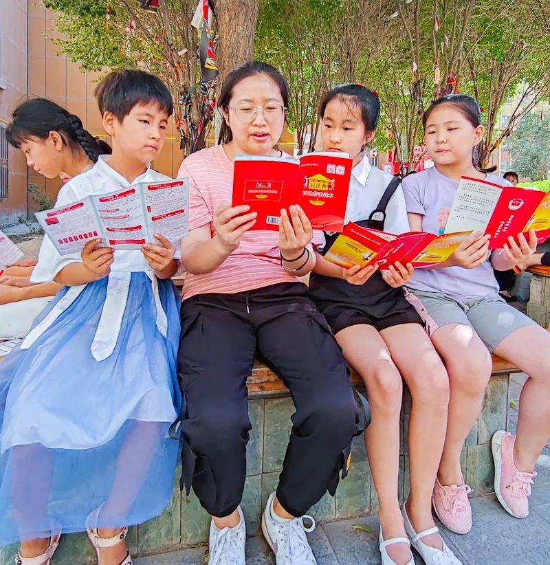 轄區青年團員吳雅蘭引導各族少年兒童一起學(xué)習《中華人民共和國民法典》