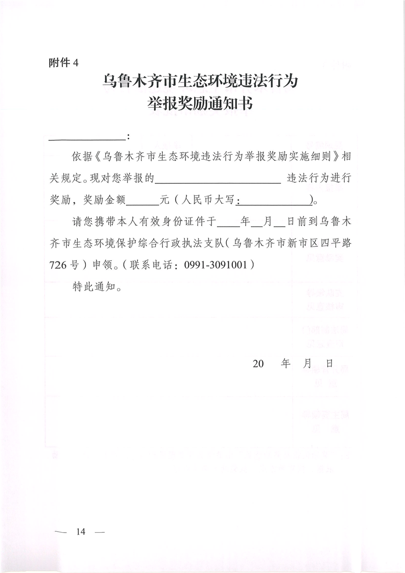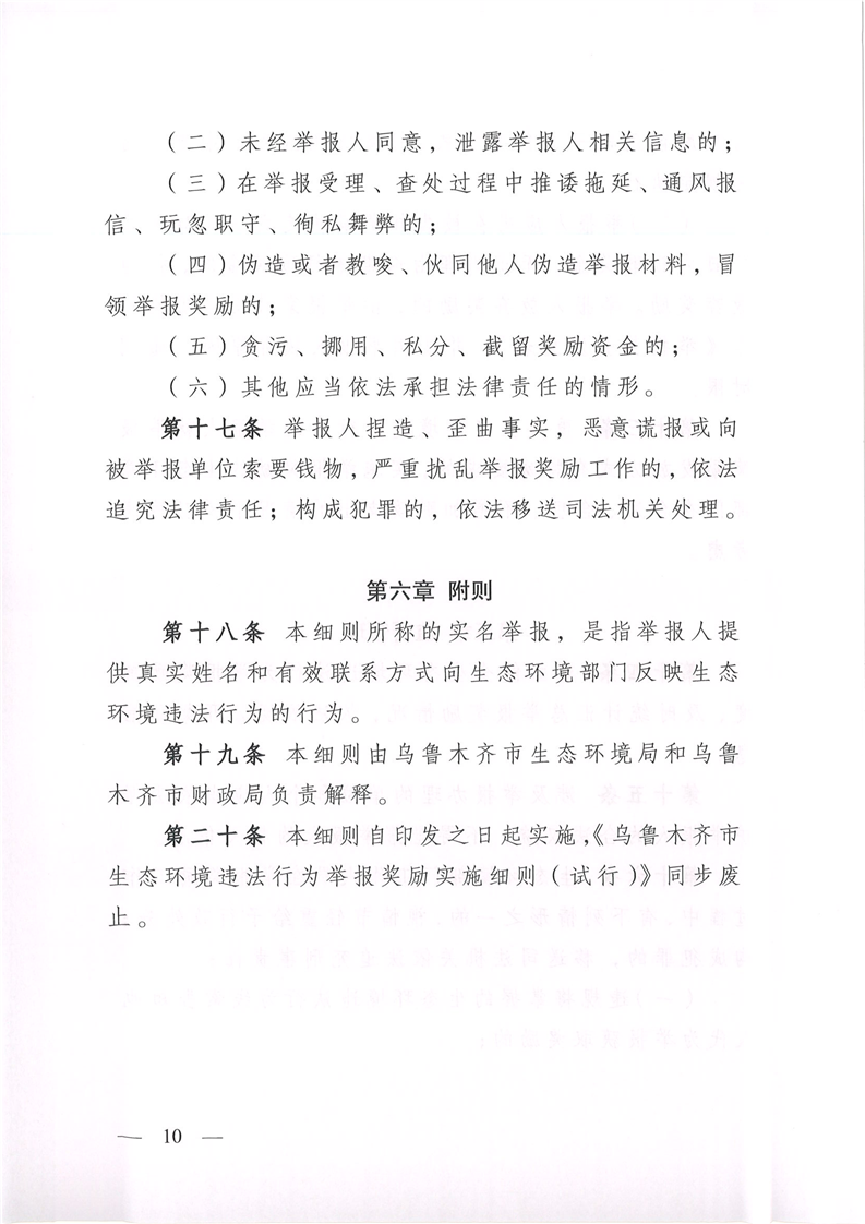 烏魯木齊市生態(tài)環(huán)境違法行為舉報獎勵實(shí)施細則