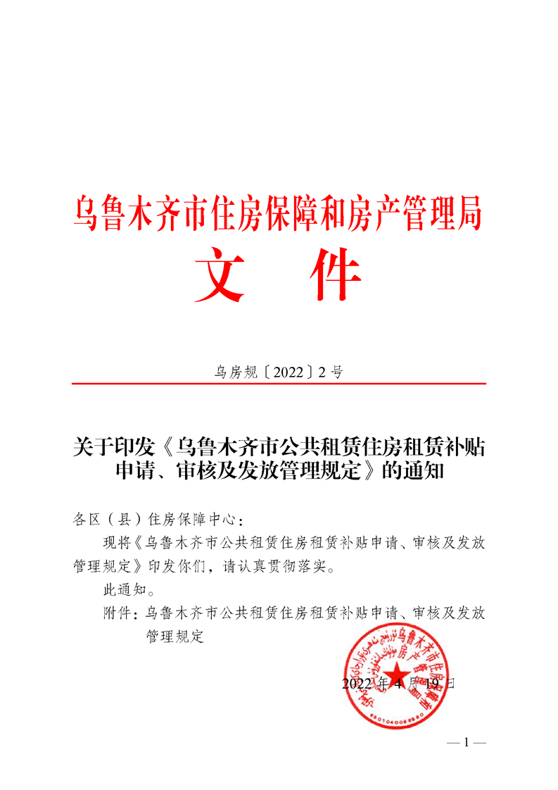 關(guān)于印發(fā)《烏魯木齊市公共租賃住房租賃補貼申請、審核及發(fā)放管理規定》的通知