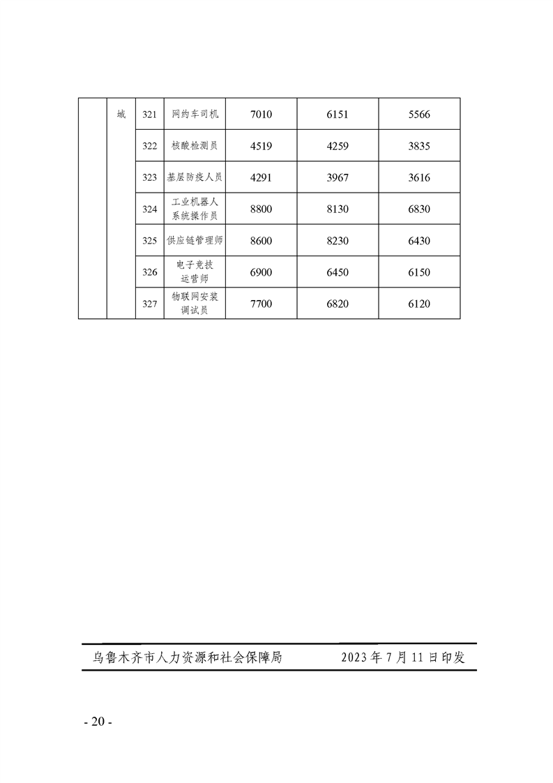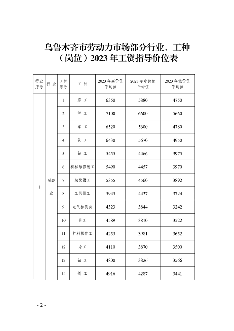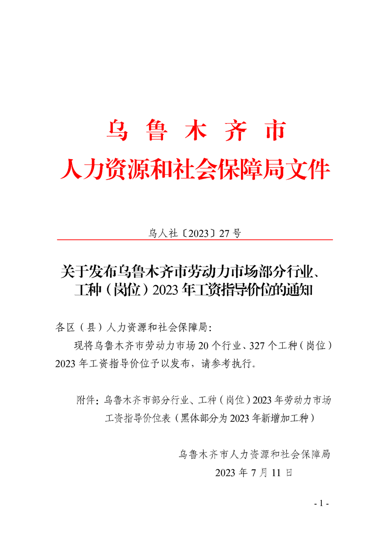 關(guān)于發(fā)布烏魯木齊市勞動(dòng)力市場(chǎng)部分行業(yè)、工種(崗位)2023年工資指導價(jià)位的通知