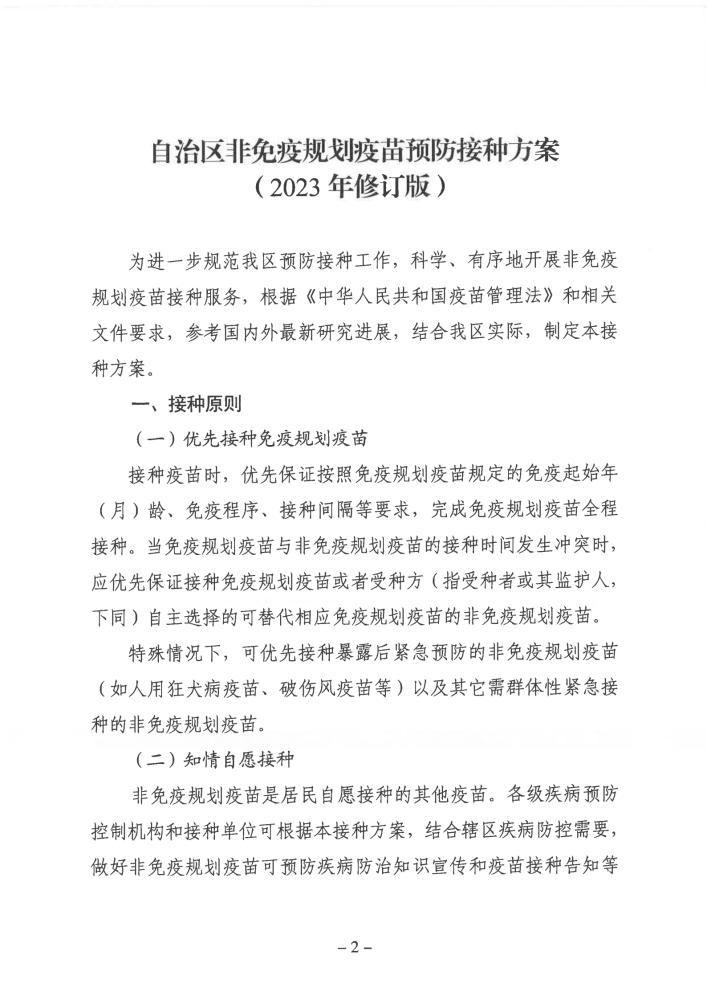 關(guān)于印發(fā)自治區非免疫規劃疫苗接種方案(2023年修訂版)的通知