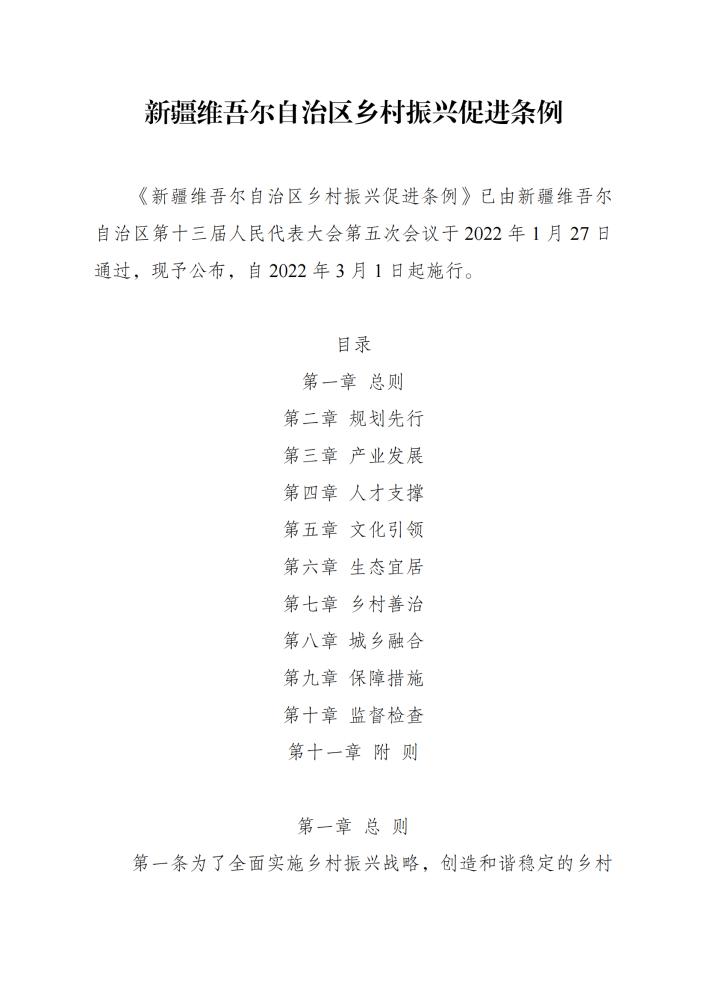 新疆維吾爾自治區鄉村振興促進(jìn)條例