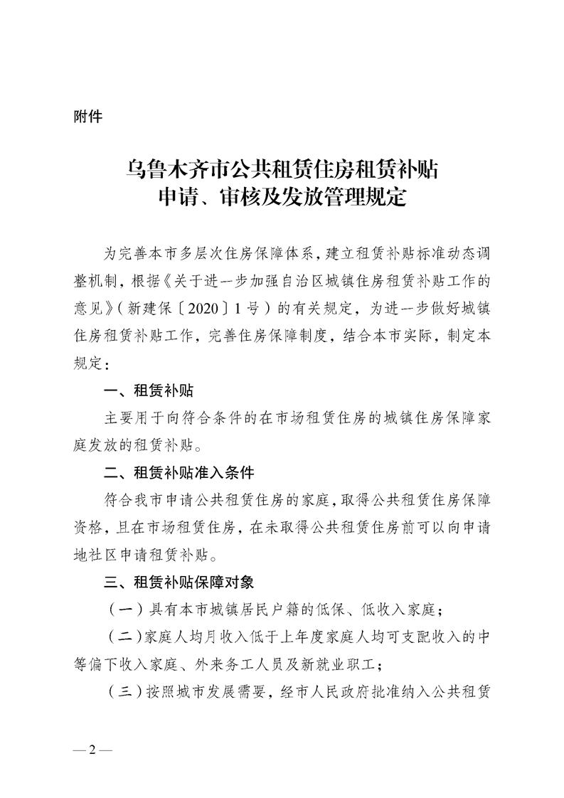 關(guān)于印發(fā)《烏魯木齊市公共租賃住房租賃補貼申請、審核及發(fā)放管理規定》的通知